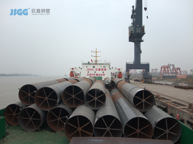 中鐵大橋局集團汕頭牛田洋快速通道項目螺旋鋼管樁,規(guī)格為φ3350×25/36mm、φ3144×22mm、φ2840×20mm ,材質(zhì)為Q355C,單支最長37.9米,總重量約18000噸。鋼管樁樁頂以下15米范圍進行防腐處理,防腐采用熔結(jié)環(huán)氧粉末工藝,外防腐有1000μm、650μm、500μm、內(nèi)防腐200μm。由于我司已有多年大口徑螺旋鋼管樁的生產(chǎn)經(jīng)驗,生產(chǎn)工藝技術(shù)非常成熟,生產(chǎn)員工也有豐富的實際工作經(jīng)驗,產(chǎn)品質(zhì)量穩(wěn)定可靠,用戶非常滿意。