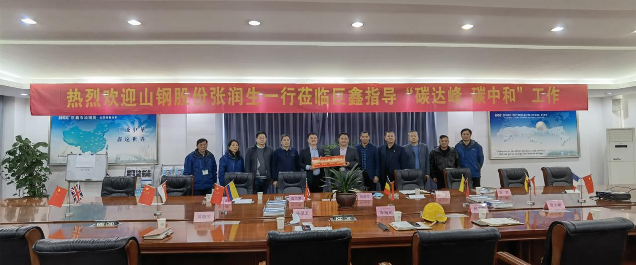 2021年11月25日,山東鋼鐵集團股份有限公司副總經(jīng)理、山鋼股份公司日照公司總經(jīng)理張潤生、科技質(zhì)量中心副主任周蘭聚、中厚板廠副廠長劉朋、板材銷售部部長潘衛(wèi)東、板材部風電組組長張凱等一行來巨鑫考察指導“碳達峰碳中和”工作,受到江蘇巨鑫石油鋼管有限公司(以下簡稱“JSGG巨鑫鋼管”)李海軍總經(jīng)理熱情接待。