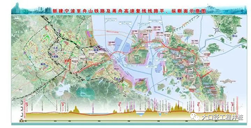 新建寧波至舟山鐵路及甬舟高速?gòu)?fù)線線路平、縱斷面示意圖
