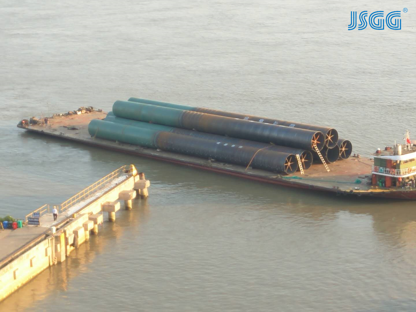 巨鑫鋼管海工基地發(fā)運(yùn)中交二航局承建常泰長(zhǎng)江大橋鋼管現(xiàn)場(chǎng)